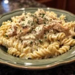 This recipe combines convenience with rich, restaurant-style flavor. The slow cooking process keeps the chicken moist and tender while allowing the sauce to develop depth. It requires simple pantry ingredients and minimal preparation. You can set it in the morning and return to a nearly finished dinner. The creamy sauce coats every strand of pasta beautifully, creating a satisfying and comforting meal that appeals to both children and adults.